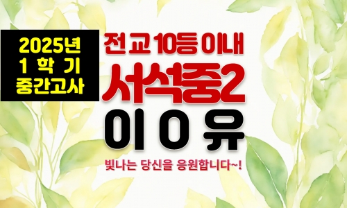2025년 1학기 중간고사 명예그릿인 이O유 서석중2학년 전교 10등 이내 🏆