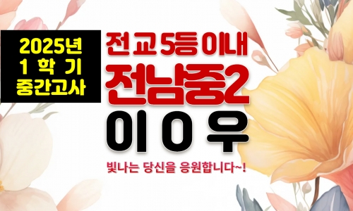 2025년 1학기 중간고사 명예그릿인 이O우 전남중2학년 전교 5등 이내 🏆