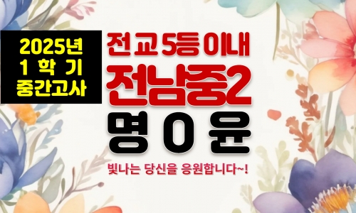 2025년 1학기 중간고사 명예그릿인 명O운 전남중2학년 전교 5등 이내 🏆