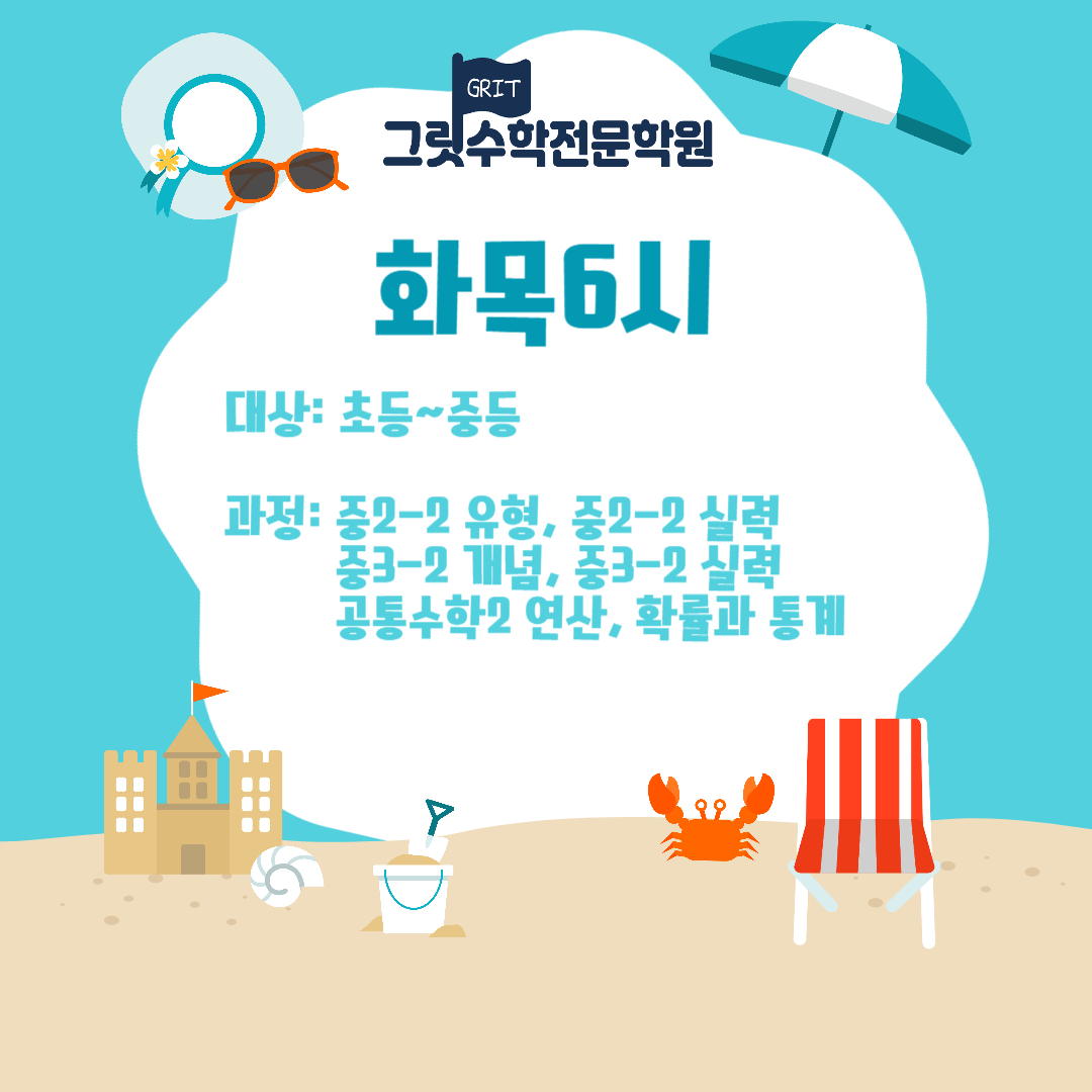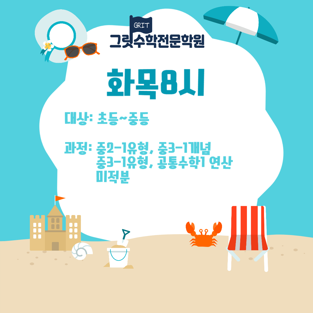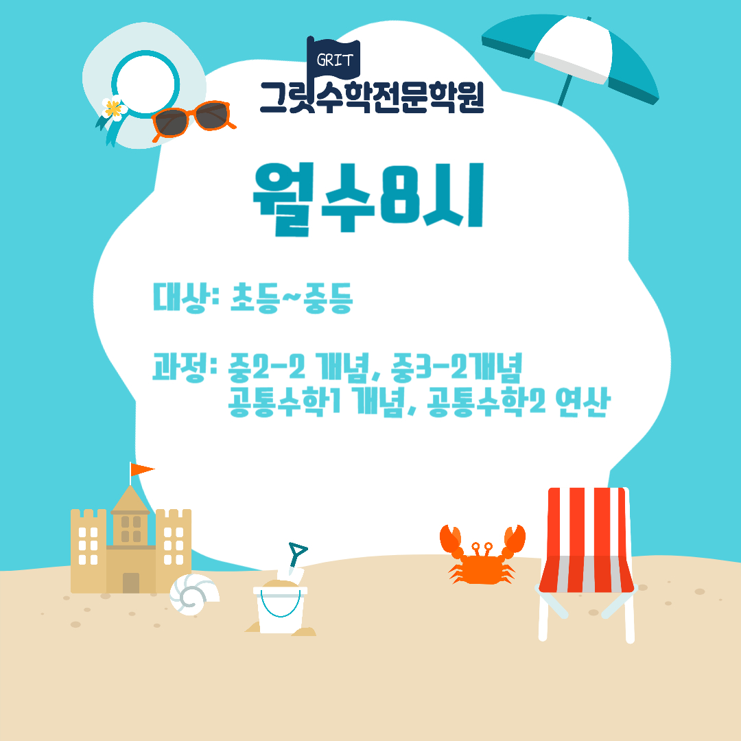 그릿수학전문학원 6월~8월 여름학기 수학 중등 정규반 개강을 안내해 드립니다.