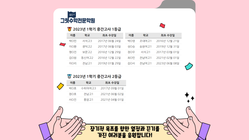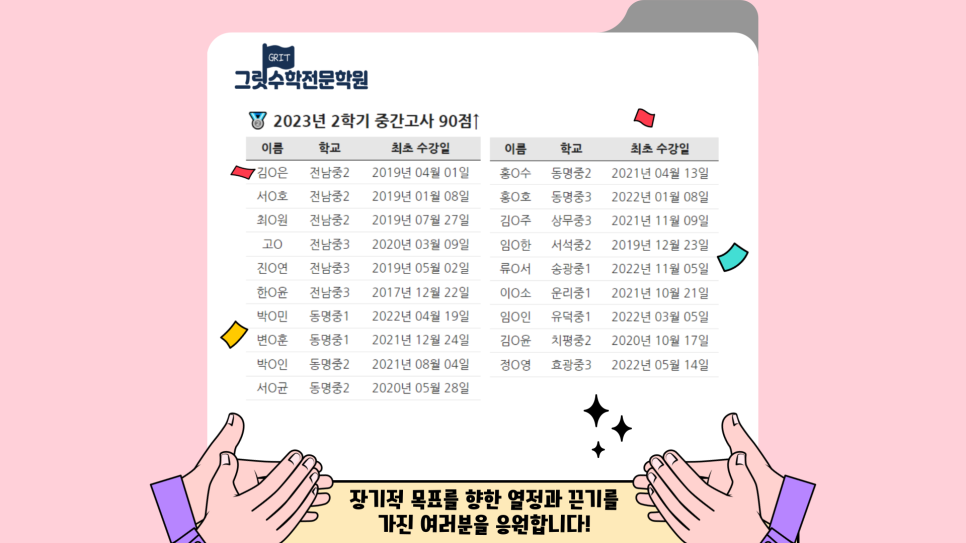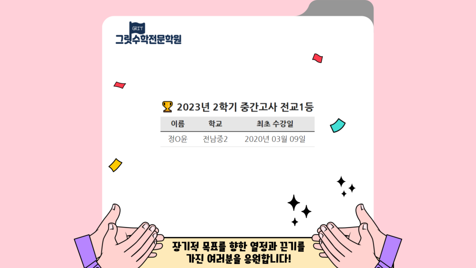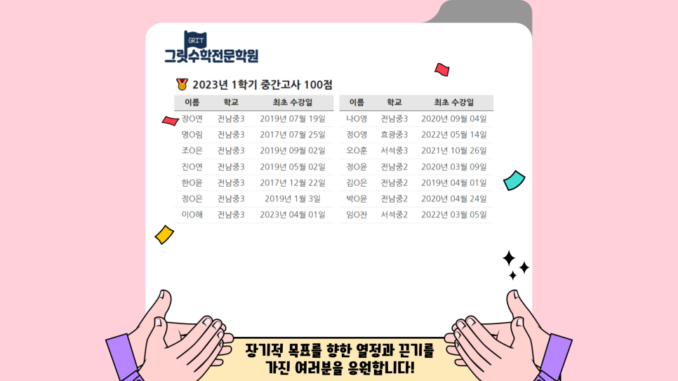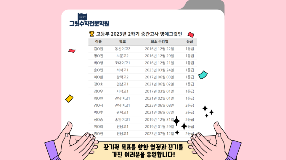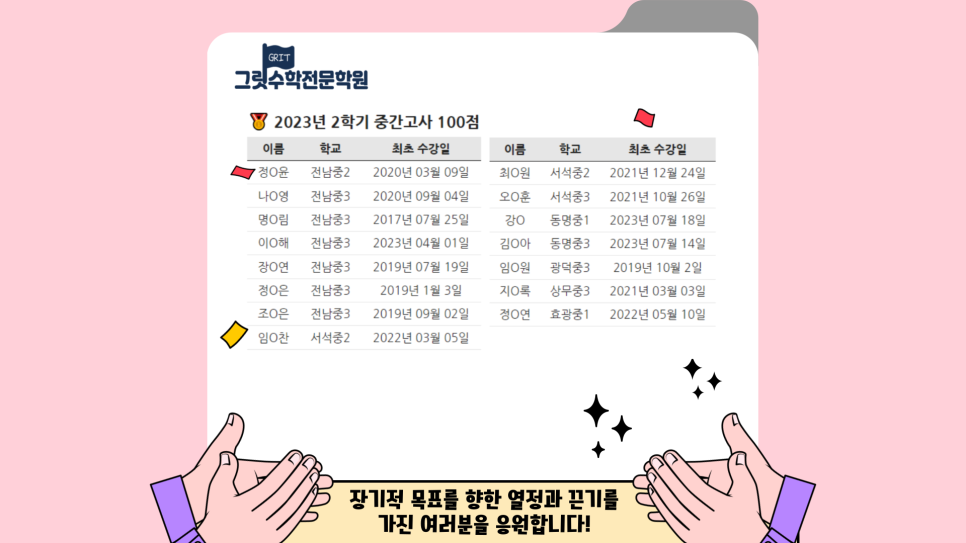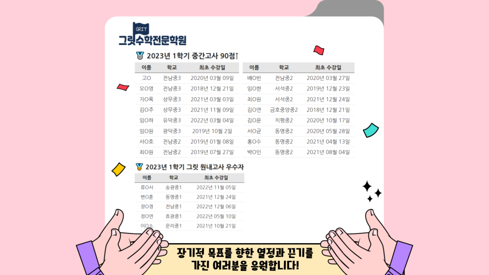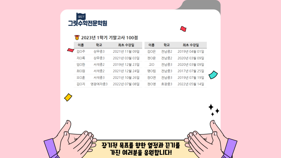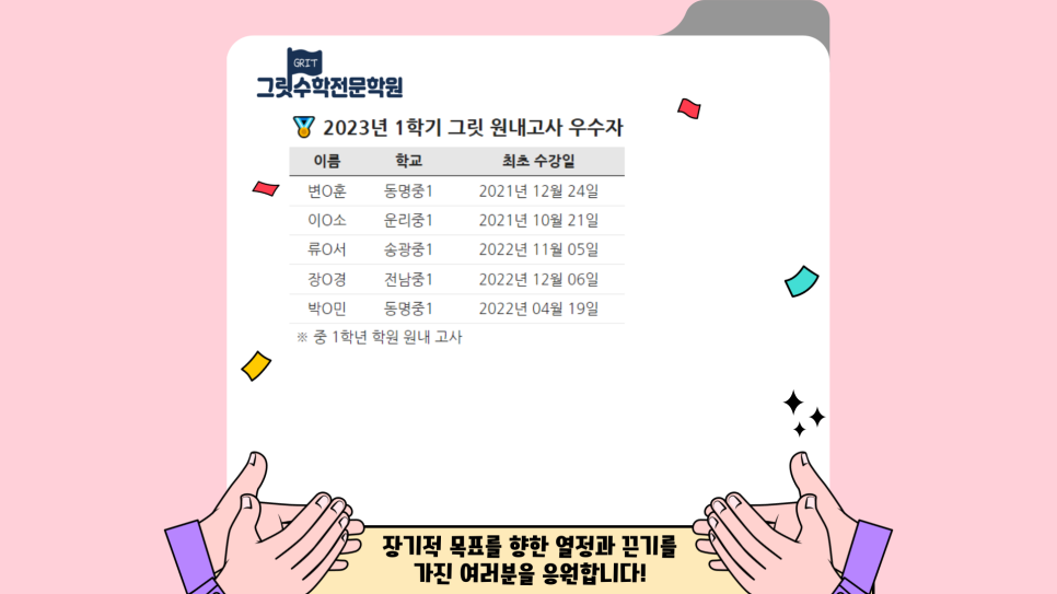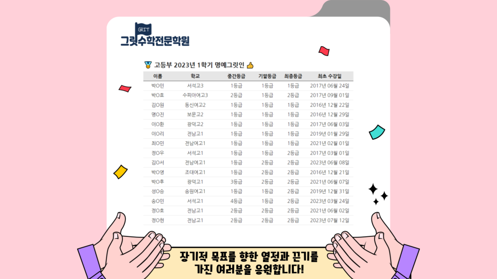 상무지구 그릿수학전문학원🏴 2023년 1학기 명예그릿인을 소개합니다 🏆👍