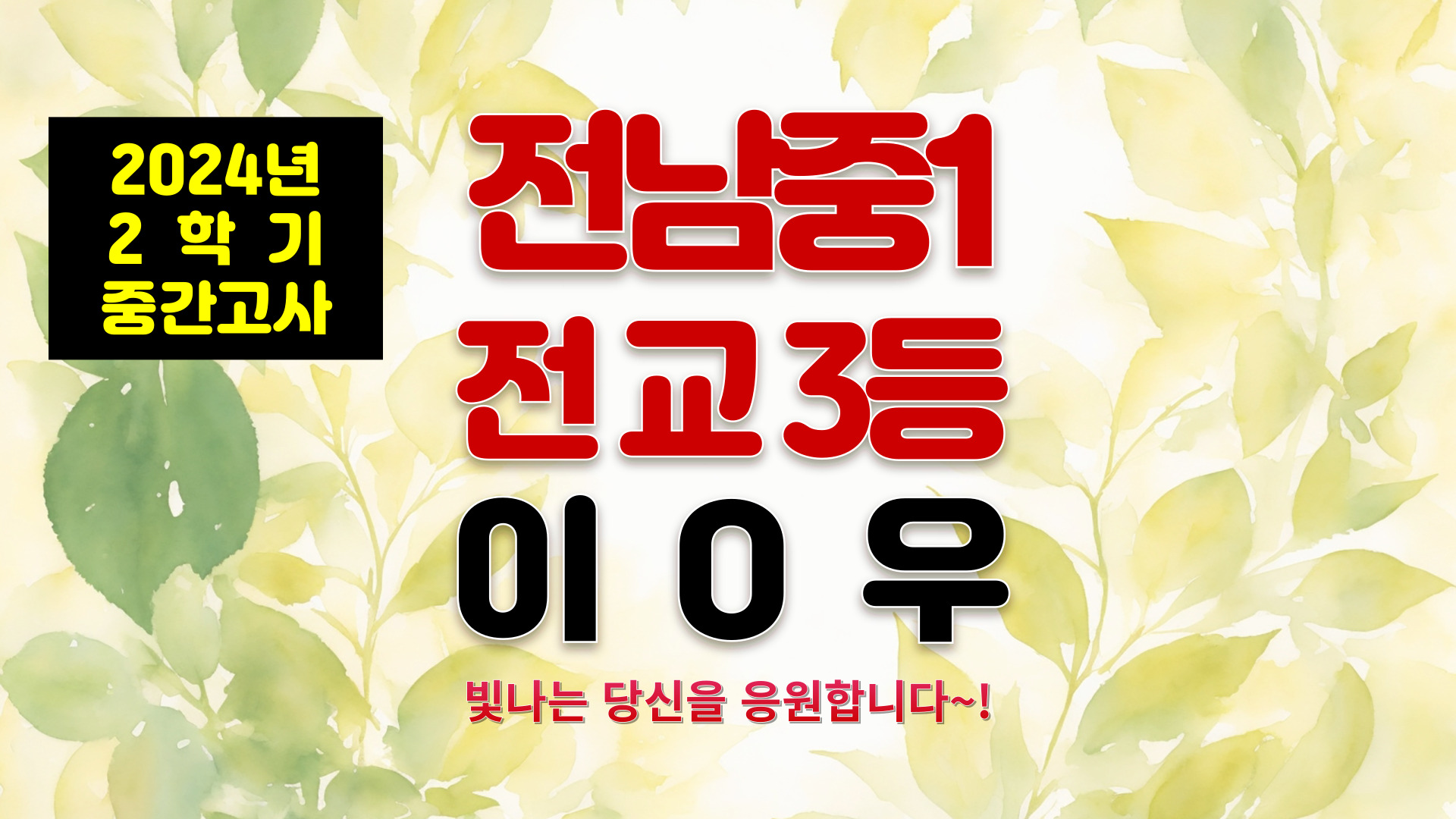 2024년 2학기 중간고사 명예그릿인 이O우 전남중 1학년 전교3등 🏆