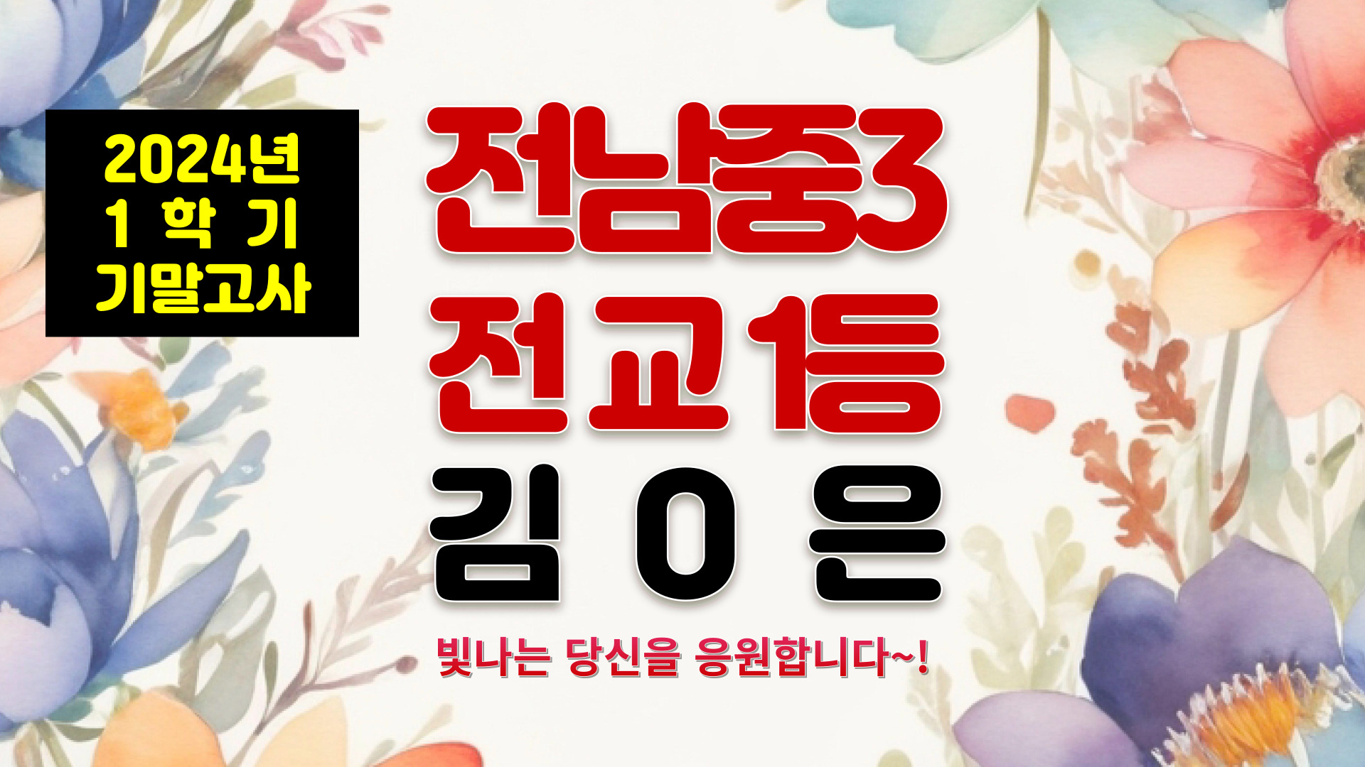 2024년 1학기 기말고사 명예그릿인 김O은 전남중 3학년 전교1등 🏆