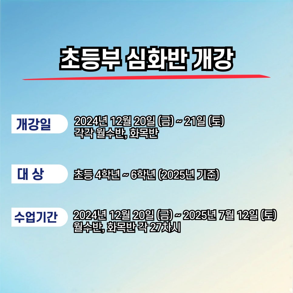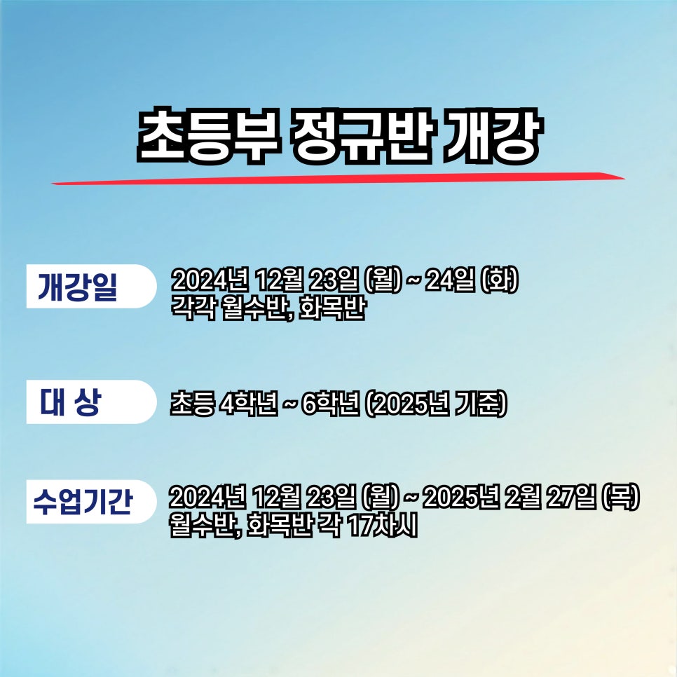 초등부 겨울학기 심화반&정규반 12월 개강 안내